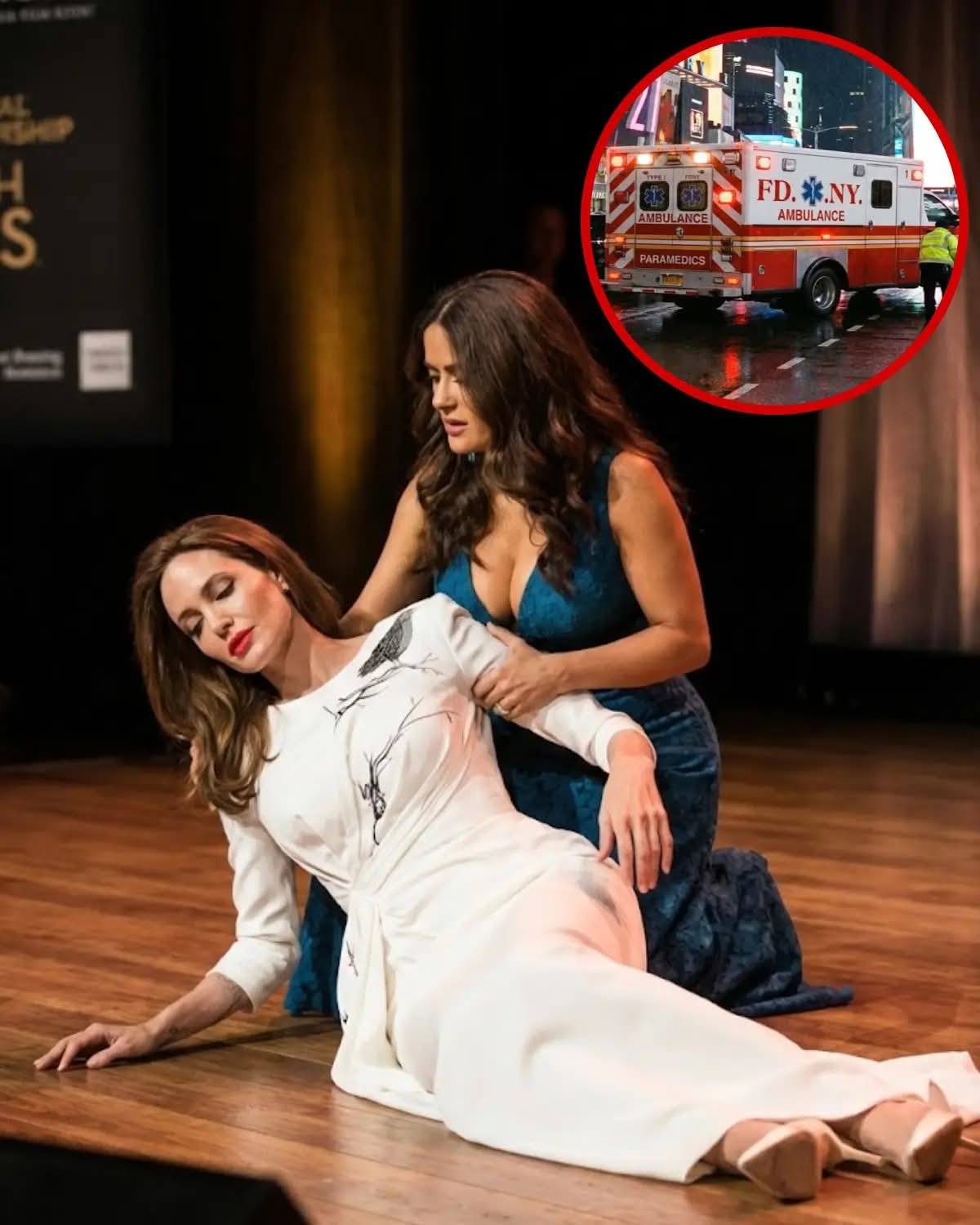 According to witnesses, the atmosphere was warm and celebratory as Jolie took the stage, greeted by sustained applause. She appeared calm and focused, engaging with the audience in her familiar, thoughtful manner. But midway through the appearance, something seemed off. Observers noted a brief pause, a visible change in her posture, and then, suddenly, Jolie collapsed
