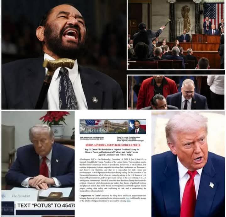 Washington plunged into chaos at dawn after Rep. Al Green detonated a political earthquake — a formal resolution to impeach and remove President Trump, citing “habitual abuses of power,” “orchestrated incitement of violence,” and “dangerous death threats” directed at members of Congress and the federal judiciary.