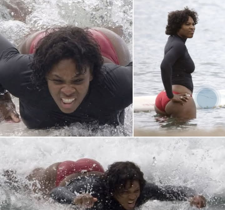 It starts innocently enough. Serena, the queen of the court, decides to trade her racket for a surfboard. She’s out in the ocean, black rash guard clinging to her legendary frame, red bottoms flashing against the white foam. The sun is high, the water is glassy, and for a split second, everything looks perfect. She’s paddling out, strong and steady, the way only a 23-time Grand Slam champion can. You almost believe she’s about to ride a perfect barrel.